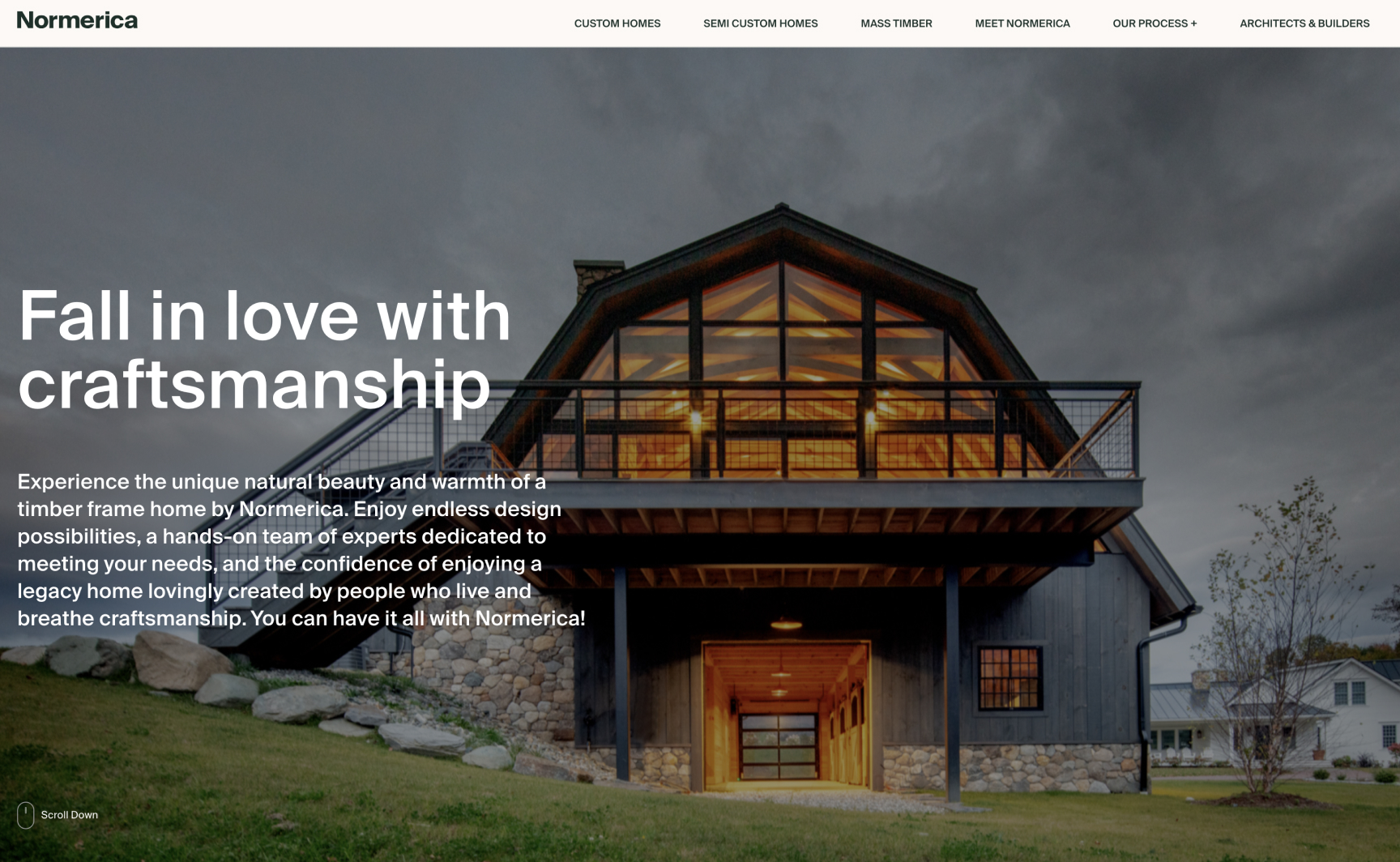 This case study showcases our full redesign of the Normerica website—from storytelling and UX strategy to responsive design and interactive features. Our goal was to elevate their brand online with a refined visual identity, seamless user flows, and custom tools that make it easy for customers to explore design options and start their home-building journey.